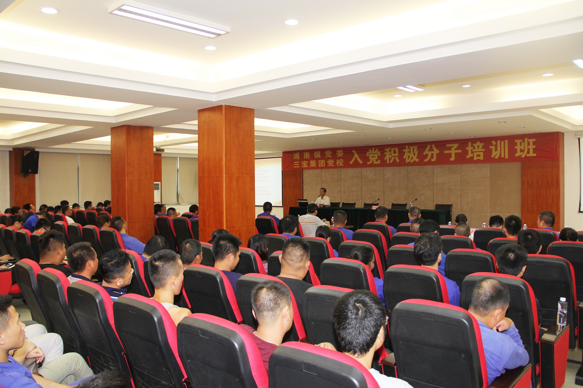 2018年8月6日上午, 浦南鎮(zhèn)黨委與三寶集團(tuán)黨校在三寶集團(tuán)指揮中心四樓黨校會(huì)議室召開(kāi)2018年入黨積極分子培訓(xùn)班,并舉行黨校講師聘書(shū)頒發(fā)儀式。市委黨校副教授洪碧華老師、浦南鎮(zhèn)組委林益生同志、三寶集團(tuán)黨委書(shū)記林軍同志出席會(huì)議,浦南鎮(zhèn)和三寶集團(tuán)的入黨積極分子共計(jì)100余人參加了培訓(xùn)。
