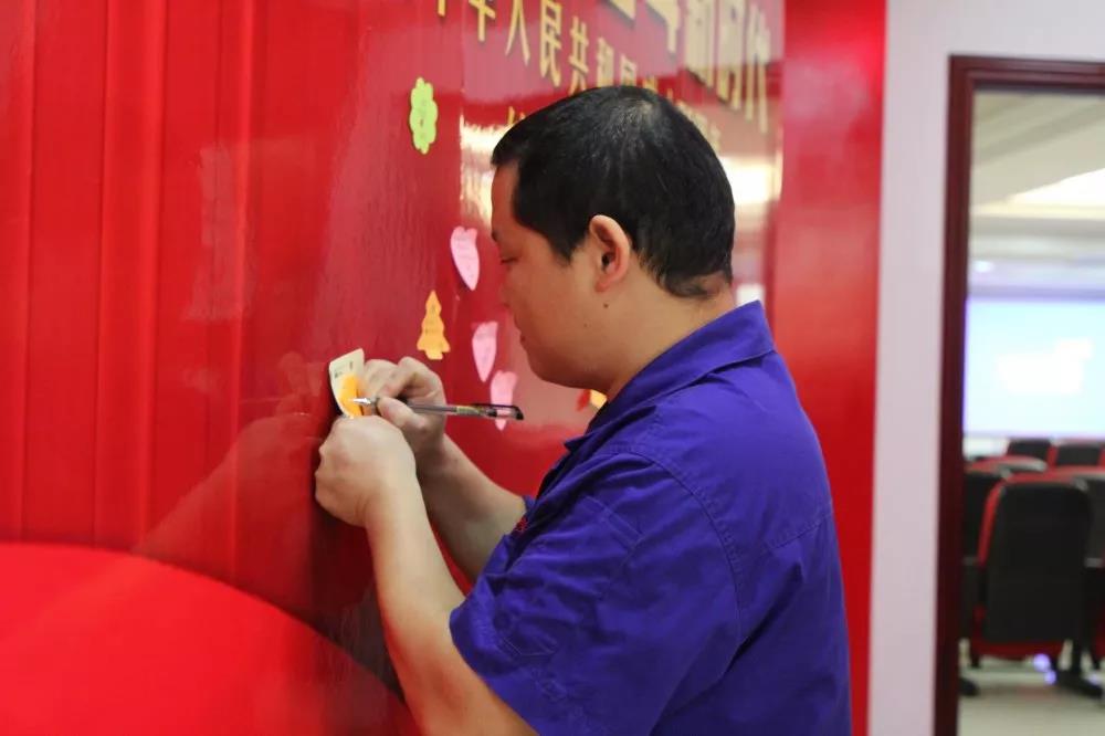 會后,與會黨員紛紛提筆祝福祖國,一張小小的便利貼,承載著三寶黨員、職工對祖國母親的無限深情。不忘初心,牢記使命,讓我們扛起身上的使命擔(dān)當(dāng),祝愿祖國的明天更加繁榮昌盛,祝愿三寶的明天更加和諧美好。