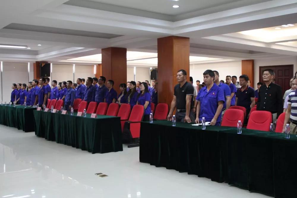 大會第一項(xiàng)議程--奏國歌。新中國成立70年以來,在中國共產(chǎn)黨的堅(jiān)強(qiáng)領(lǐng)導(dǎo)下,我國取得了不平凡的成就。全體與會成員在國歌聲中肅然起立,面向主席臺的黨旗,向祖國、向黨致敬。
