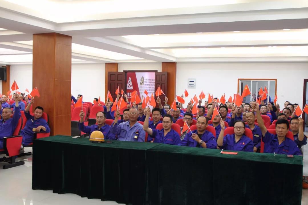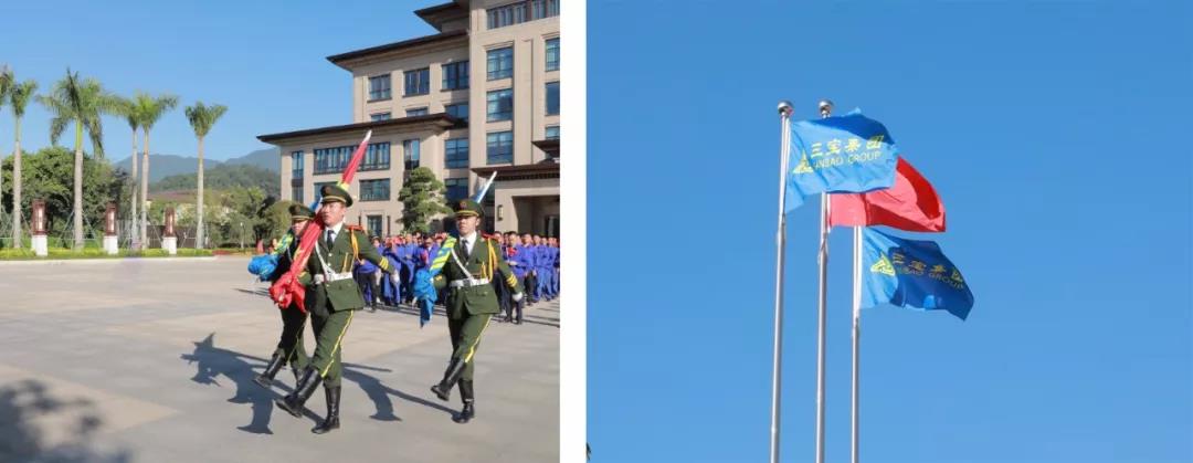 2019年10月1日上午,三寶集團(tuán)中高層領(lǐng)導(dǎo)、全體黨員、各部門各分廠員工代表共300余人在升旗臺(tái)前隆重集會(huì),由黨委書記林軍主持,舉行迎國(guó)慶升國(guó)旗儀式。