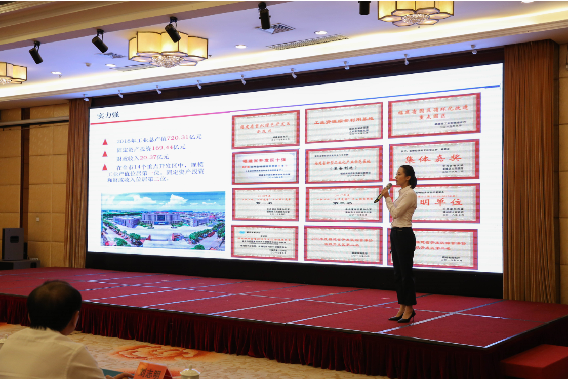 金峰經(jīng)濟(jì)開發(fā)區(qū)管委會副主任康惠萍作了金峰經(jīng)濟(jì)開發(fā)區(qū)招商推介,向與會人員展示了“金峰名片”。