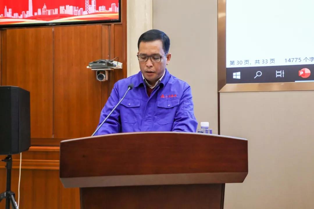 圖為生產(chǎn)副總吳長錫作《三寶集團2019年度工作總結(jié)報告》