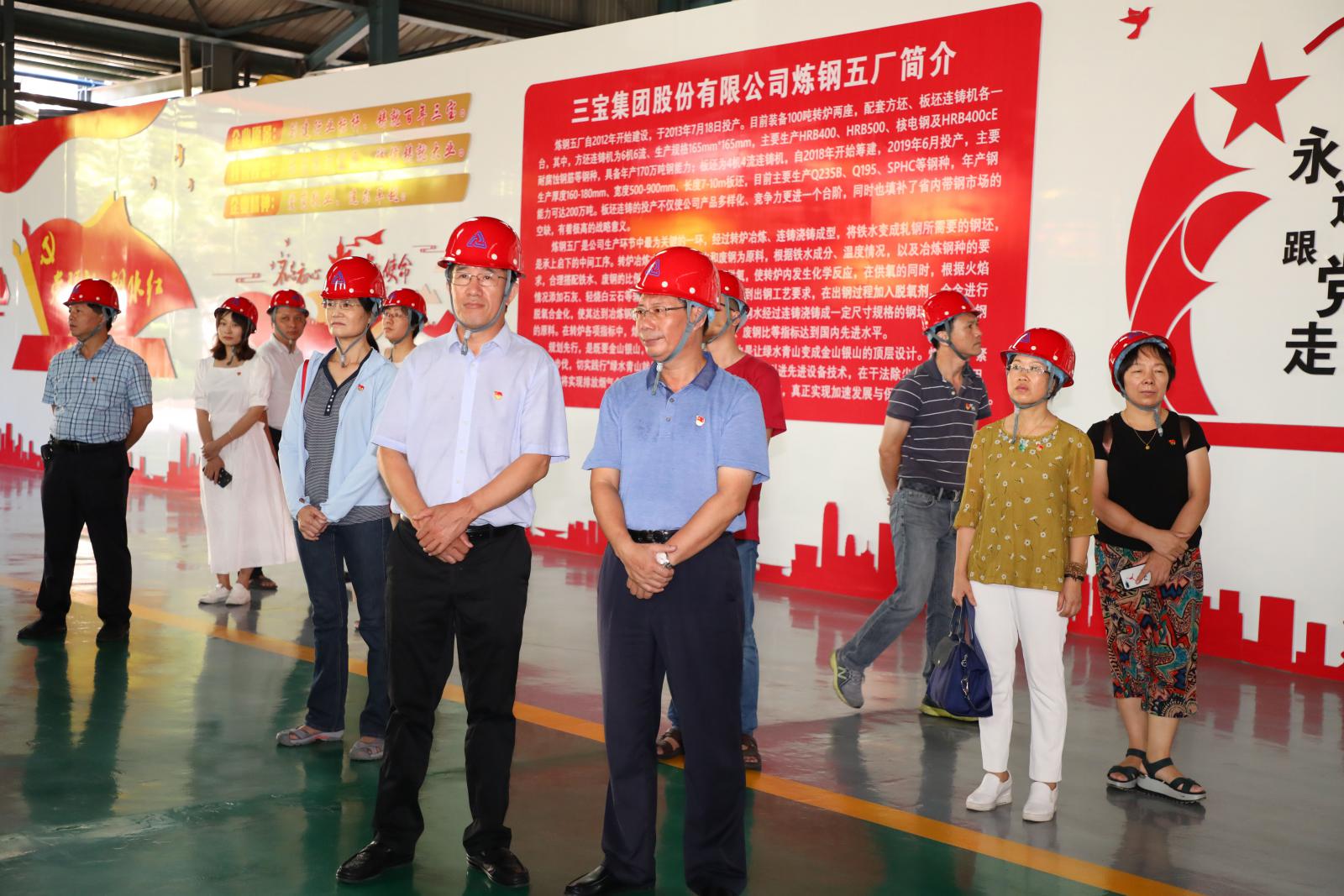 隨后,王益丁處長(zhǎng)一行先后參觀了公司的黨建基地、煉鐵廠2#高爐黨員示范生產(chǎn)線、煉鋼總廠板坯連鑄車(chē)間、3#高爐項(xiàng)目現(xiàn)場(chǎng)、熱卷廠黨員示范生產(chǎn)線以及寶園,實(shí)地感受三寶集團(tuán)“把支部建在生產(chǎn)線上”的實(shí)踐做法,并對(duì)三寶集團(tuán)的黨建工作表示高度贊賞。