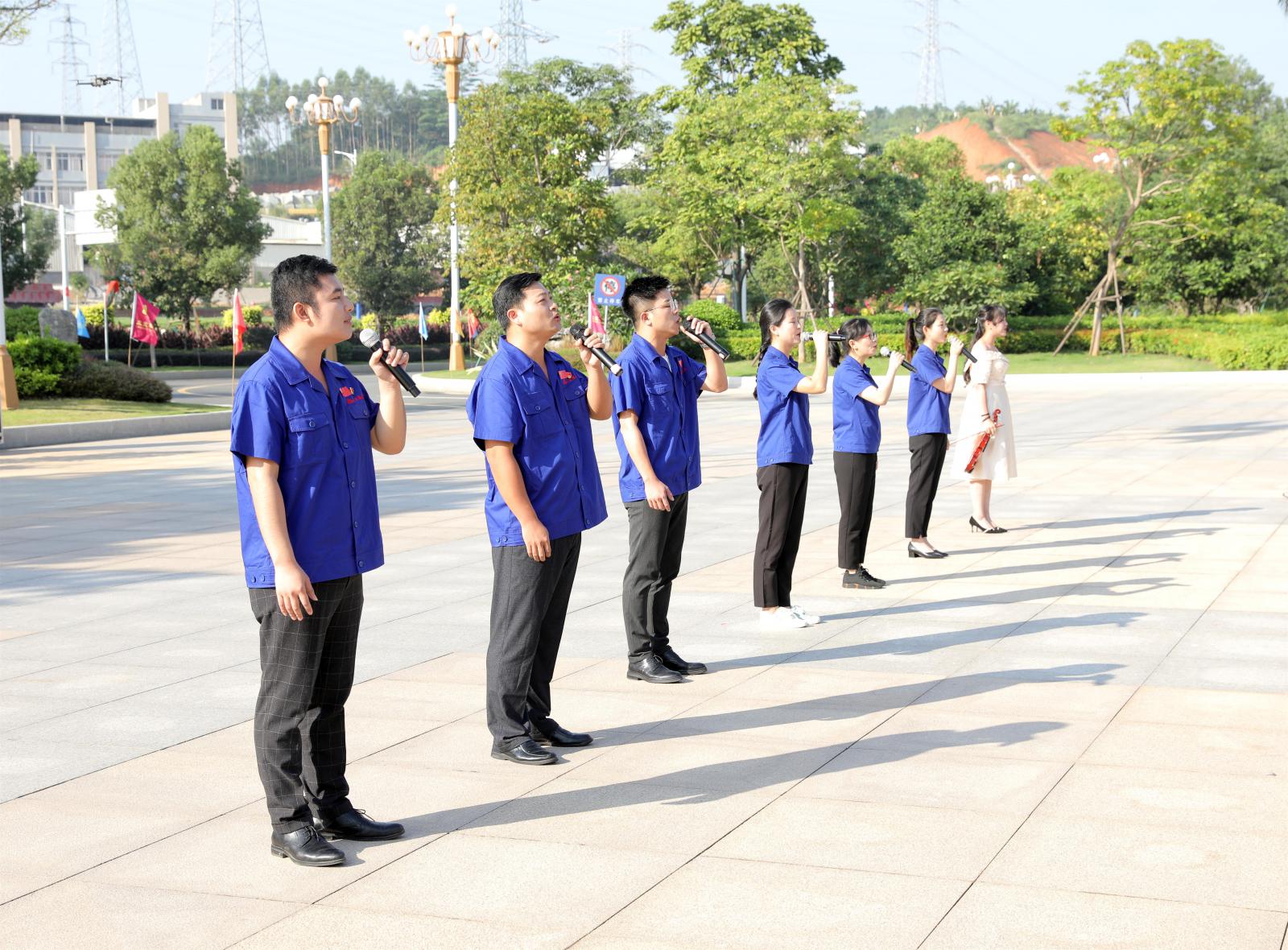 一曲國(guó)歌,是一個(gè)赤子對(duì)祖國(guó)最深情的告白;一面國(guó)旗,是一群兒女對(duì)祖國(guó)最長(zhǎng)情的眷念。伴隨著雄壯的《義勇軍進(jìn)行曲》,鮮艷的五星紅旗冉冉升起,在場(chǎng)人員莊嚴(yán)肅立,面向國(guó)旗行注目禮,齊聲高唱國(guó)歌,為偉大祖國(guó)送上深情祝福。