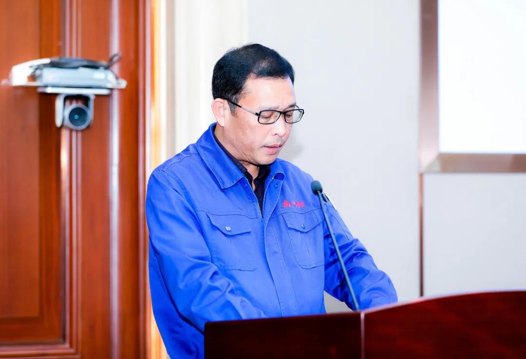副總經(jīng)理褚鳳弟、總工程師董慧軍為先進(jìn)班組代表頒獎(jiǎng)