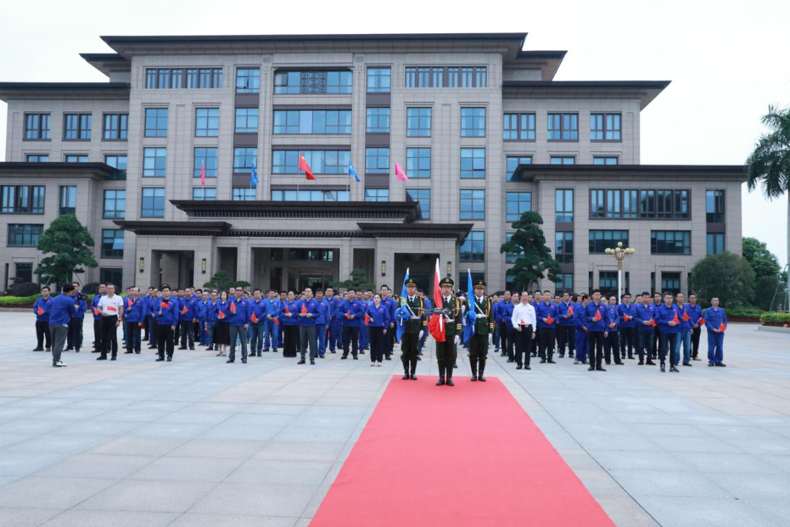 伴隨著雄壯的《義勇軍進行曲》,鮮艷的五星紅旗冉冉升起,在場人員莊嚴肅立,面向國旗行注目禮,齊聲高唱國歌,為偉大祖國送上深情祝福。
