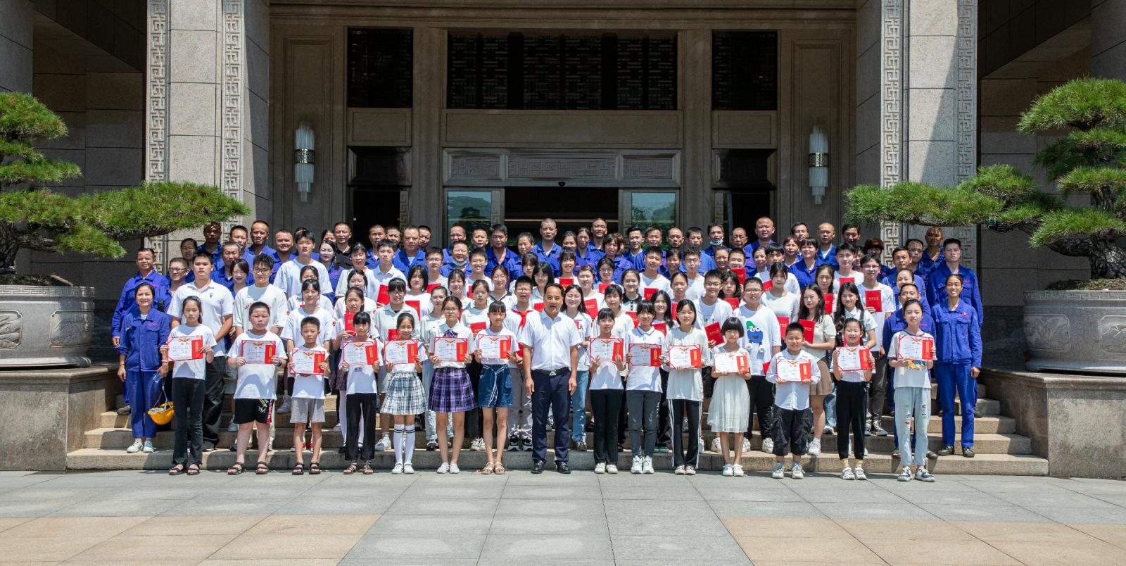 王小清副董事長宣讀《關于2022年度員工子女獎學的決定》,獎勵高校錄取、競賽類、獲得“三好生”稱號以及國家期刊發(fā)表文章等類別的員工子女182人,合計發(fā)放獎金76.8萬元。隨后,方副區(qū)長與集團領導為獲獎員工子女代表頒發(fā)榮譽證書和獎金。