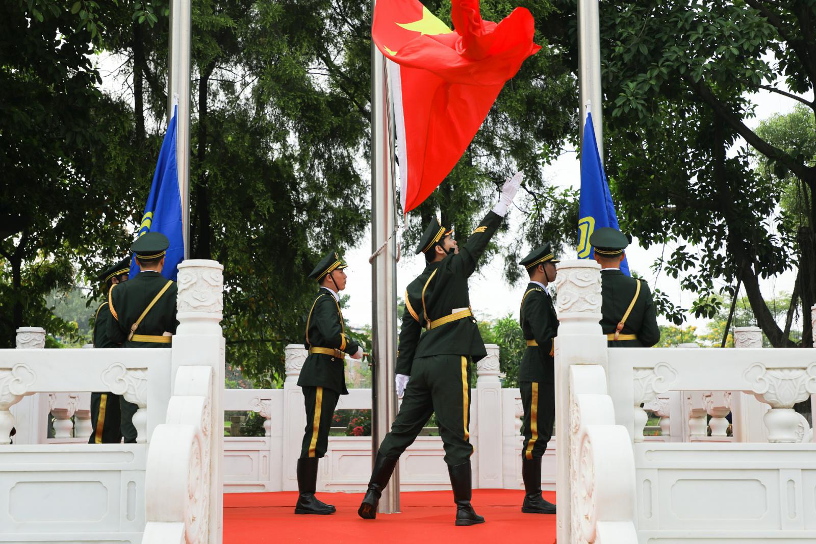 由三寶集團(tuán)職工組建的國旗護(hù)衛(wèi)隊,邁著鏗鏘有力的步伐,護(hù)送國旗走向旗臺,在雄壯的國歌聲中,鮮艷的五星紅旗迎著新一輪朝陽冉冉升起,愛國之情在所有參加升旗儀式的三寶人心中升騰。