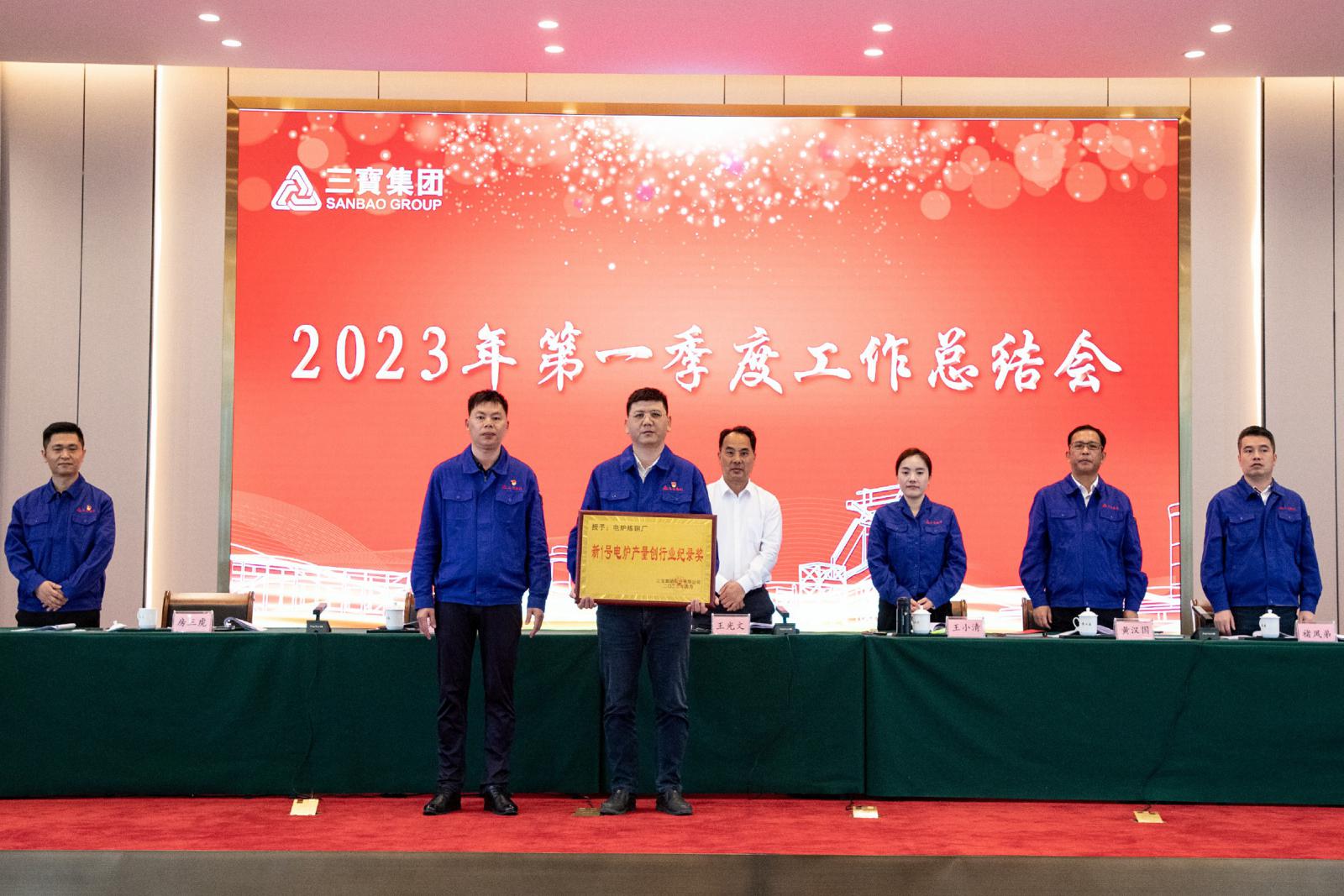 副總經(jīng)理黃漢國(guó)代表集團(tuán)宣讀《關(guān)于表彰2023年第一季度優(yōu)秀單位的決定》,集團(tuán)領(lǐng)導(dǎo)為受表彰的電爐煉鋼廠頒獎(jiǎng)。頒獎(jiǎng)后,電爐煉鋼廠廠長(zhǎng)作優(yōu)秀管理經(jīng)驗(yàn)分享。