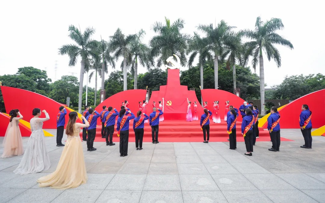 升旗儀式后,舉行了集團慶祝中國共產(chǎn)黨建黨102周年廣場表演,歌舞《唱支山歌給黨聽》《眾人劃獎開大船》《我們都是追夢人》和國旗護衛(wèi)隊大合唱《走向復興》讓大家耳目一新,聲聲鏗鏘有力的誓言響徹天空,充分表達了對黨忠誠的堅定信念。集團掌舵人王光文董事長還帶領大家再次唱響《眾人劃槳開大船》,展示了“團結(jié)拼搏、追求卓越”三寶人的精神風貌,在場的每位員工熱血沸騰。