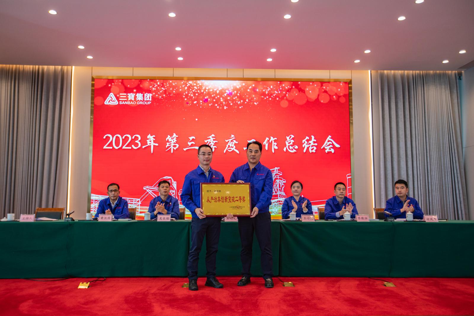 董事長在會上發(fā)表重要講話。他首先向光榮退休的干部員工致敬,感謝他們20多年來對三寶的辛勤付出和無私奉獻;對獲得“從嚴治本創(chuàng)新突破二等獎”的資源部表示熱烈祝賀。王董事長表示,第三季度集團首次榮登“中國企業(yè)500強”、獲評“全國冶金綠化先進單位”,三寶廣場項目如期盛大開業(yè),安全二級標準化核驗準備工作較好完成,這些成績來自于全體干部職工的共同努力與奮斗。