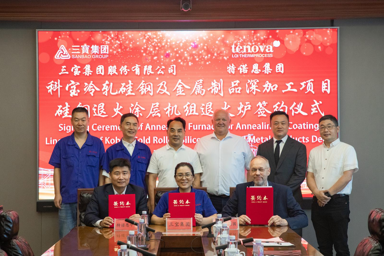9月7日下午,三寶集團(tuán)與德國特諾恩-洛伊集團(tuán)成功簽訂冷軋硅鋼項(xiàng)目退火涂層機(jī)組退火爐合同。
