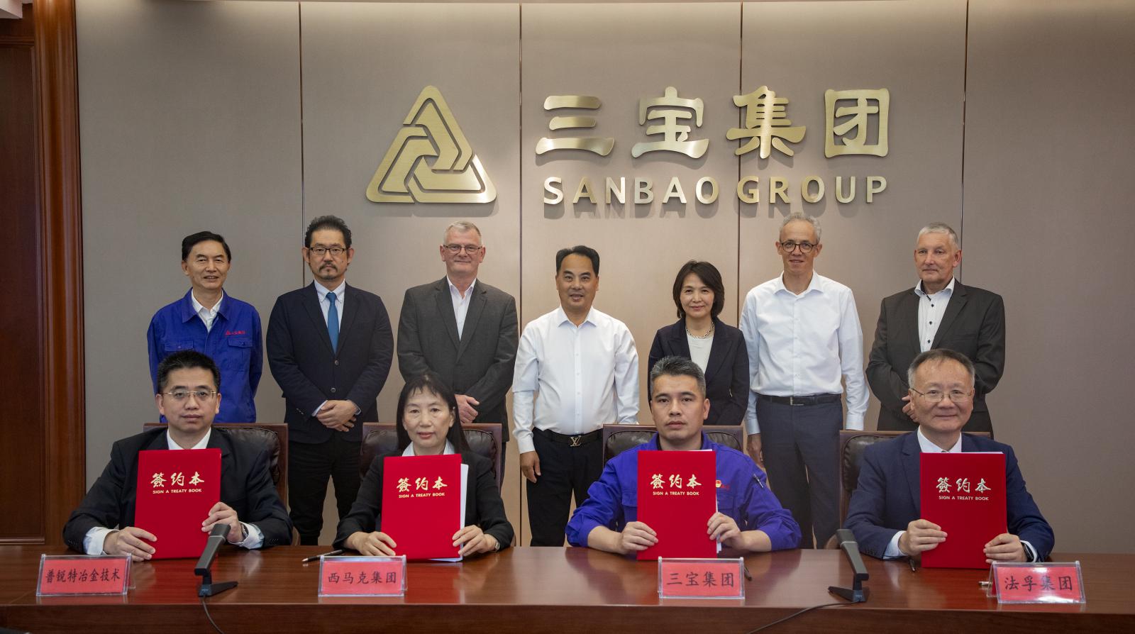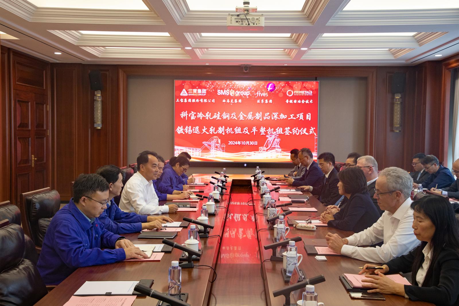 10月30日下午,三寶集團(tuán)與西馬克集團(tuán)、法孚集團(tuán)、普銳特中國簽訂鍍錫退火軋制機組及平整機組合同。