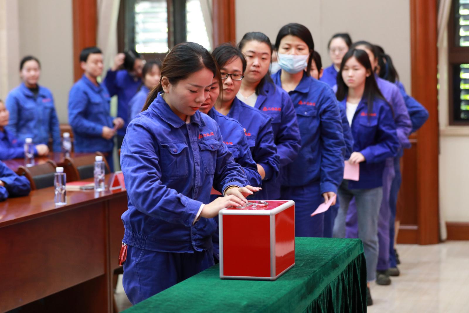 會(huì)議在雄壯的國(guó)歌聲中拉開序幕。大會(huì)選舉產(chǎn)生了三寶集團(tuán)婦聯(lián)第一屆執(zhí)行委員會(huì),吳婧、吳小貞、陳淑娜、林微娜、林雅雪、詹藝珊、蔡藝玲7名同志當(dāng)選為三寶集團(tuán)婦聯(lián)第一屆執(zhí)行委員,詹藝珊當(dāng)選為三寶集團(tuán)第一屆婦聯(lián)主席;吳婧當(dāng)選為副主席。新當(dāng)選的公司婦聯(lián)主席詹藝珊作了表態(tài)發(fā)言。