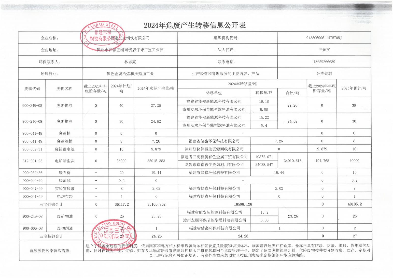 2024年危廢產(chǎn)生轉(zhuǎn)移信息公開表