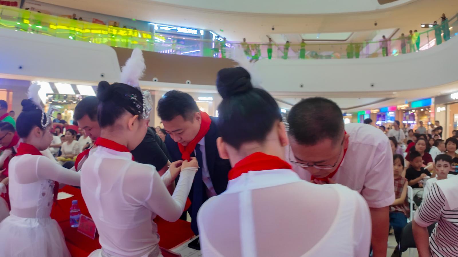 活動伊始,少先隊(duì)員代表為領(lǐng)導(dǎo)們系上了鮮艷的紅領(lǐng)巾,以少年禮致以美好祝福!